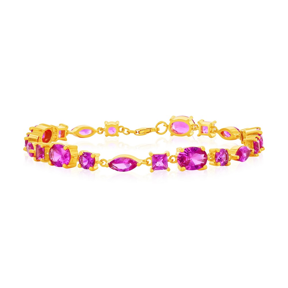 | Sterling Silver, Multi-Shaped Pink CZ Bracelet - G... |