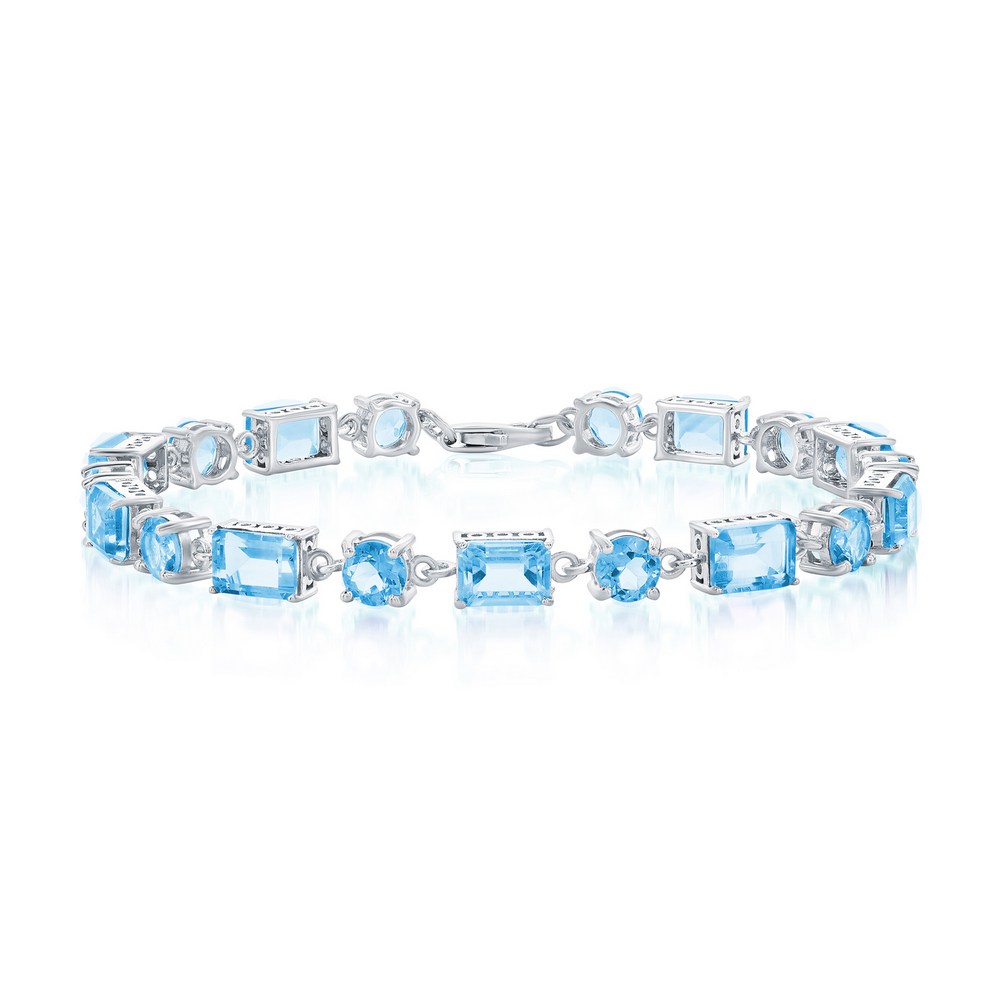 | Sterling Silver, Round & Emerald-Cut Gem Bracelet ... |