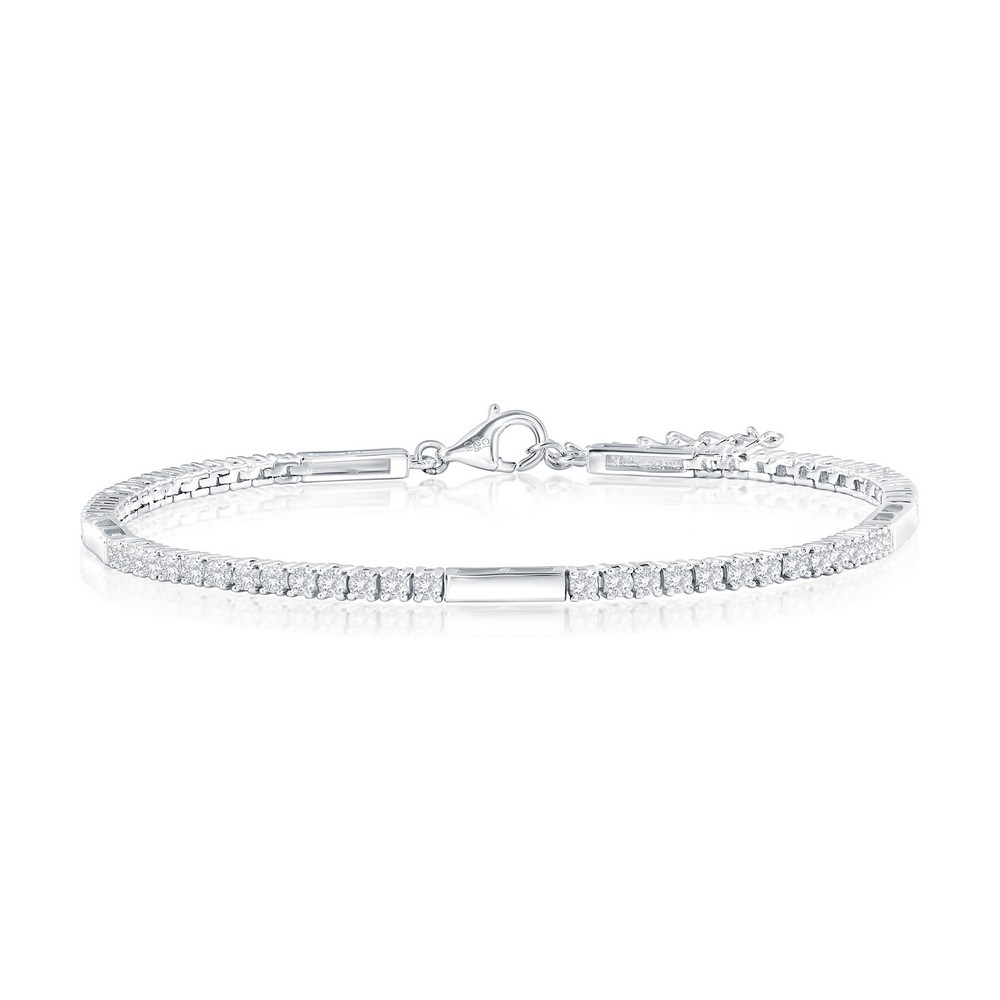 | Sterling Silver, Bar & Square CZ Tennis Bracelet |