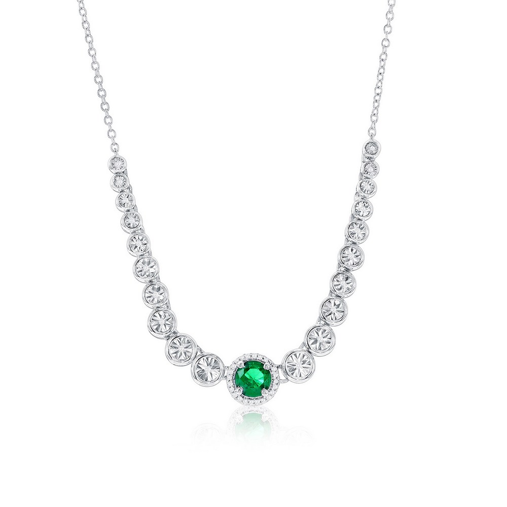 | Sterling Silver, Lab-Grown 0.41ct Emerald & 0.07ct... |